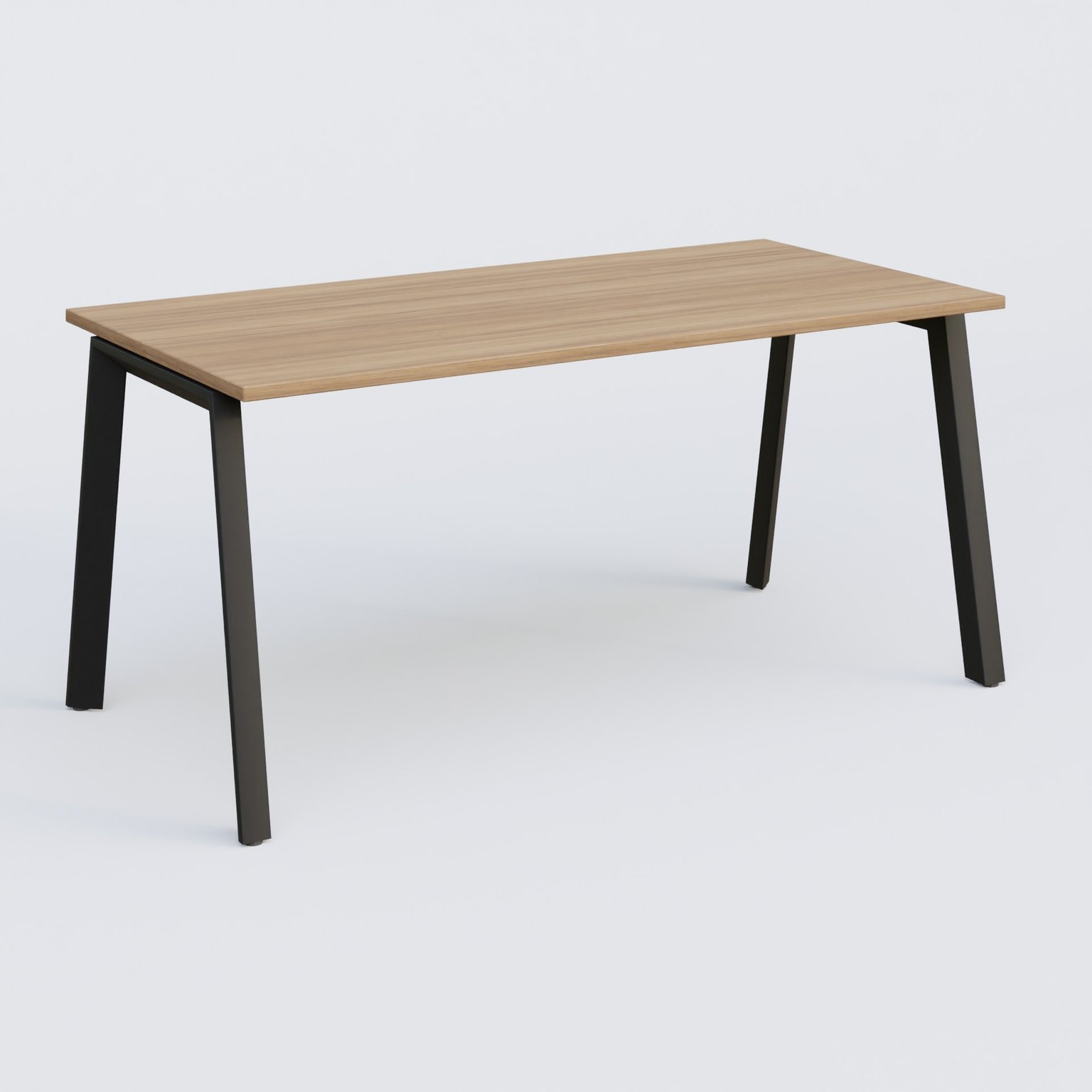 K8 plan droit 160*70 sur pieds fixe. Plateau Noyer et pietement Noir Grainé