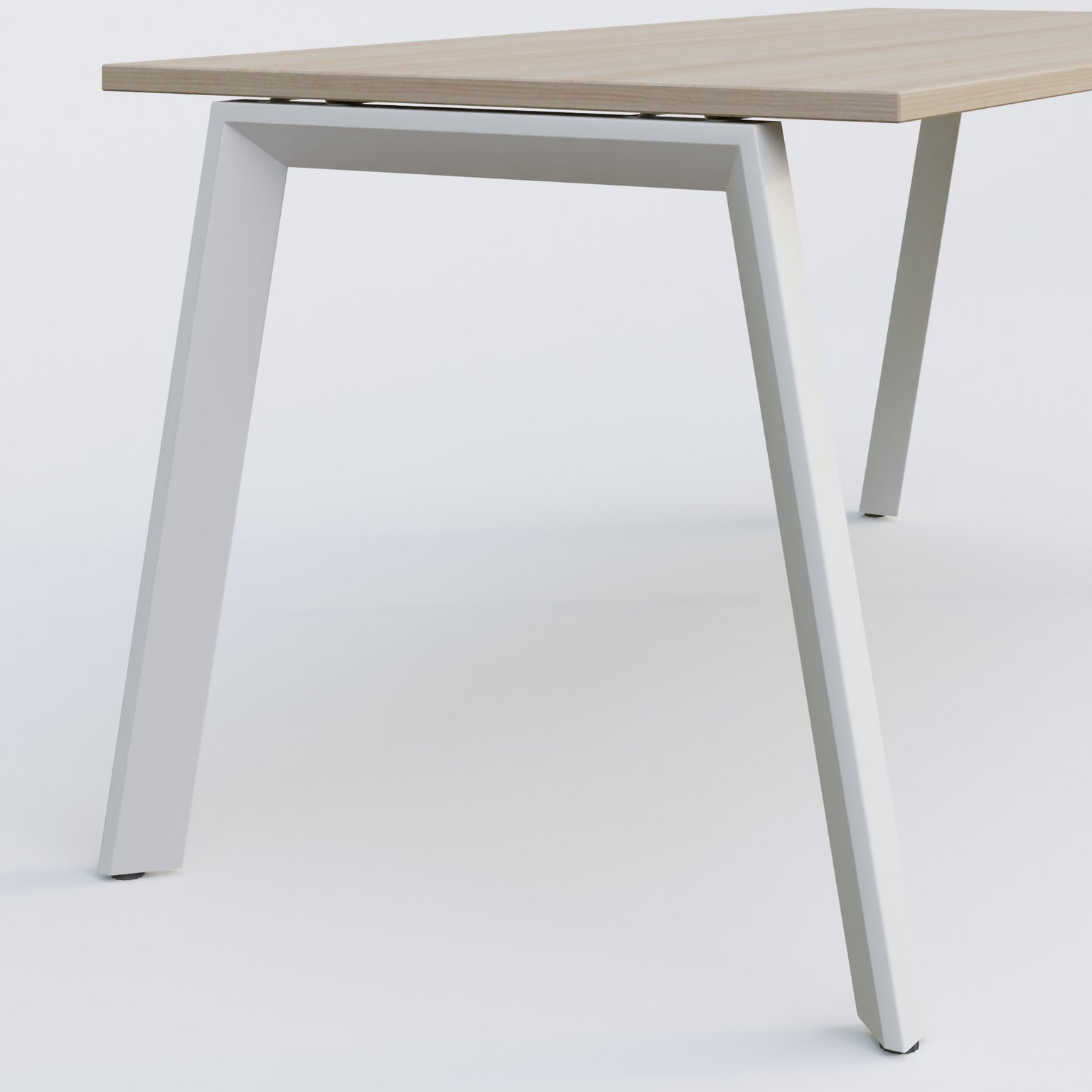 K8 plan droit 160*80 sur pieds fixe. Plateau Acacia et pietement Blanc