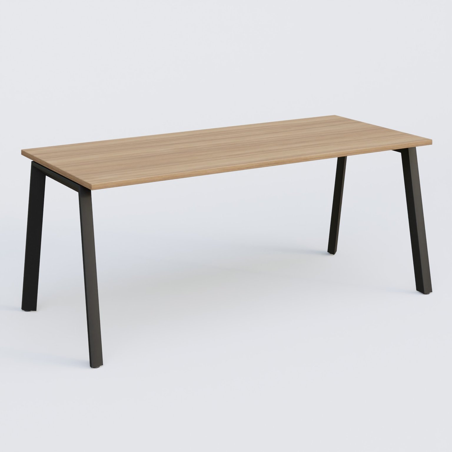 K8 plan droit 180*80 sur pieds fixe. Plateau Noyer et pietement Noir Grainé