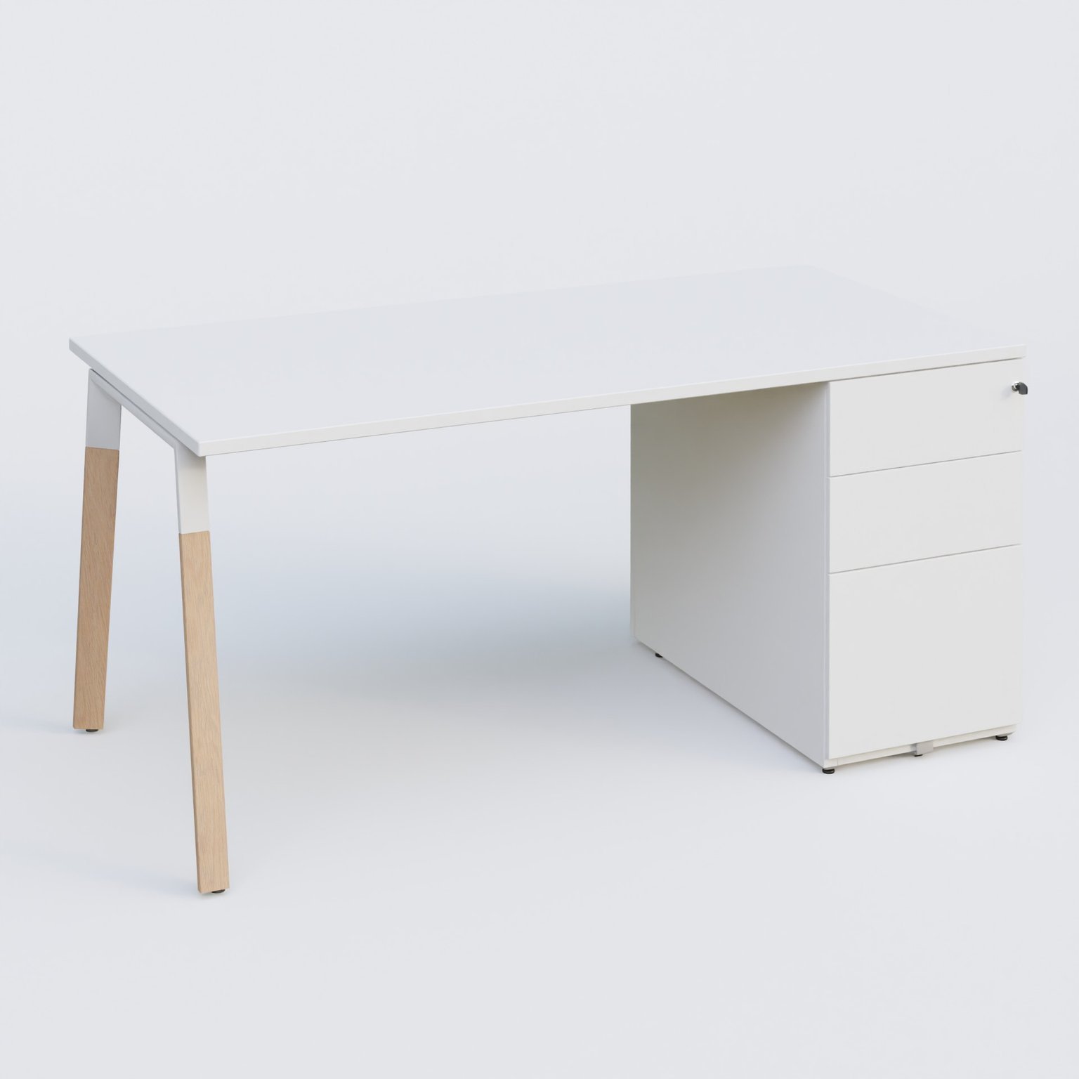 K8 WOOD Plan 180x80 avec caisson porteur en métal. Plateau blanc et caisson blanc.