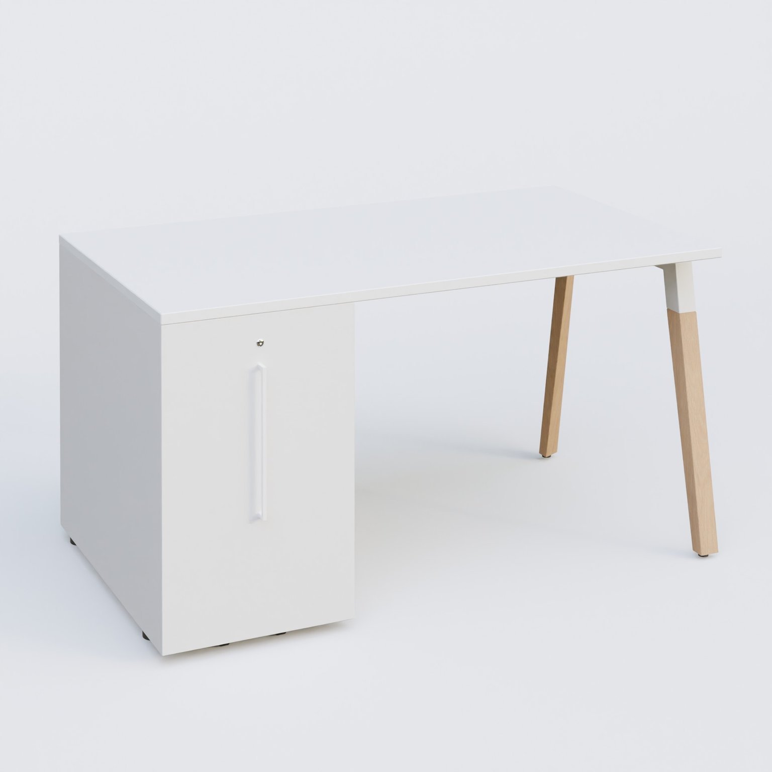 K8 WOOD Plateau 140x80 avec tour de rangement mélamine à gauche. Plateau Blanc et tour de ranfement blanche.