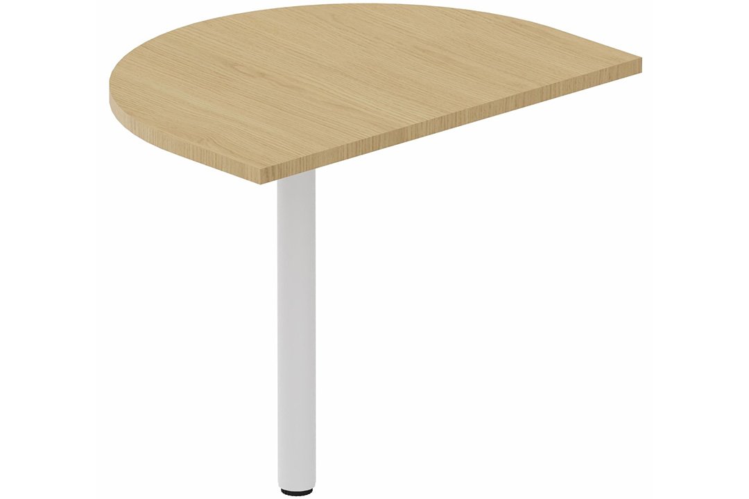 K8Wood Extension de convivialité arrondie P80 x L60 sur 1 pied de soutien - plateau chêne, piétement blanc / bois