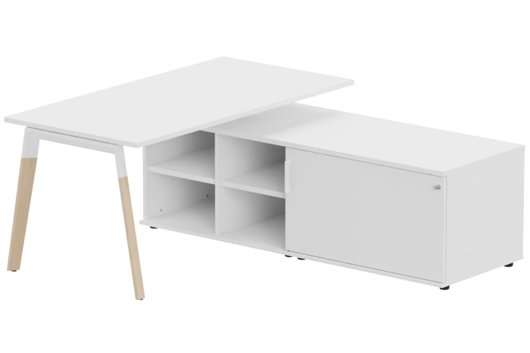 K1 VDF BOIS Compact 90° asymétrique 160x120x80/60cm retour à droite sur pied de soutien blanc/aluminium - sur délai