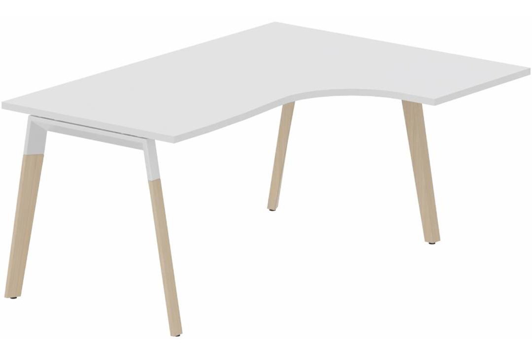 K1 VDF BOIS Compact 90° asymétrique 160x120x80/60cm retour à droite sur pied de soutien hêtre/blanc