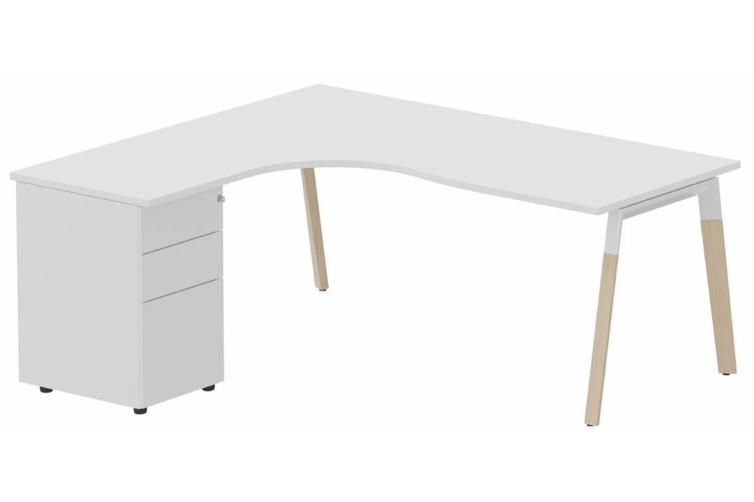 K8 Plan compact 90° asymétrique Manager 190x183x104x60cm avec caisson HB métal 3 tiroirs - retour à gauche