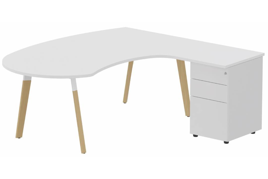- K8Wood Plan compact 90° asymétrique Manager 190x183x104x60cm avec caisson HB métal 3 tiroirs - retour à droite