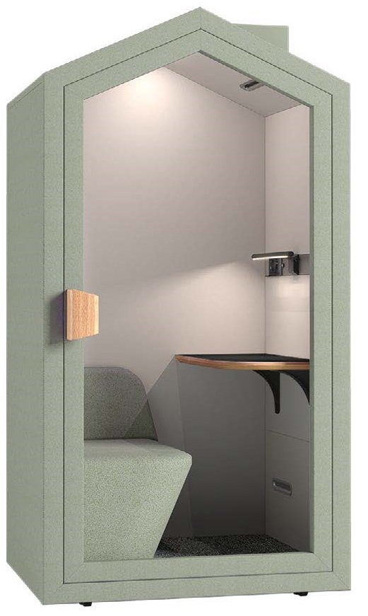 Eclairage 4000K (150Lx) Éclairage LED à lumière du jour, luminosité réglable Moquette insonorisante avec technologie de revêtement complet Porte Cadre en aluminium aviation 6063-T5, verre acoustique super blanc laminé de 3mm+3mm Bureau plateau en bois massif multicouche (la hauteur du plateau peut être ajustée de 700 à 750mm à partir du panneau de base), dimensions du plateau : L760P380H30mm Charnières dissimulées et robustes Volume de ventilation 30 m³ d'air frais circulé chaque heure, équipé du système de ventilation Turbo Capteur de mouvement Capteur infrarouge pour corps humain, s'éteint après 5 minutes d'inactivité Prise de courant Le nombre de prises KALM répond aux besoins quotidiens (1 PC + USB-A + USB-C) Respect de l’environnement Empreinte carbone ≤0.071kg CO2e Consommation d’énergie ≤0.4MJ