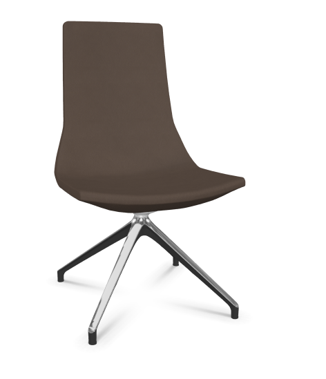 KI chaise de conférence haut dossier. piètement 4 branches en aluminium poli. revêtement vinyle RNN coloris marron