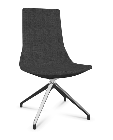 Fauteuil dossier moyen STRATUS. retour point fixe. piétement fixe 4 branches sur patins en aluminium poli