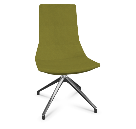 Fauteuil dossier moyen STRATUS. retour point fixe. piétement fixe 4 branches sur patins en aluminium poli