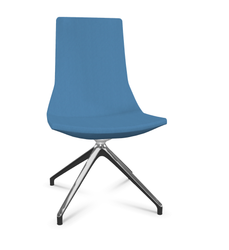 Fauteuil dossier moyen STRATUS. retour point fixe. piétement fixe 4 branches sur patins en aluminium poli