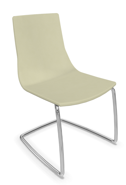 Fauteuil dossier moyen STRATUS. retour point fixe. piétement fixe 4 branches sur patins en aluminium poli