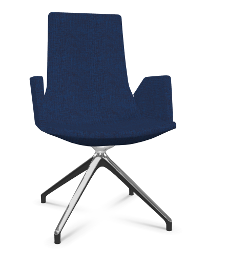 Fauteuil dossier moyen STRATUS. retour point fixe. piétement fixe 4 branches sur patins en aluminium poli