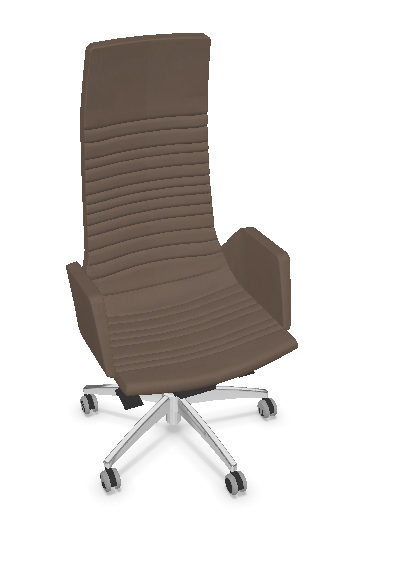 - KI fauteuil manager haut dossier avec accotoirs tapissés. piétement 5 branches en aluminium poli