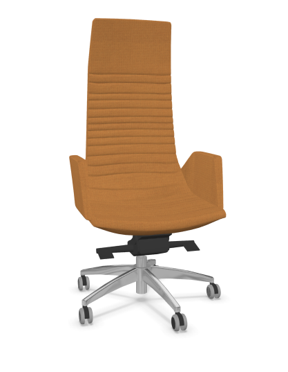 KI fauteuil manager haut dossier avec accotoirs tapissés. piétement 5 branches en aluminium poli