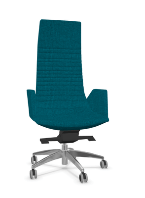 - KI fauteuil manager haut dossier avec accotoirs tapissés. piétement 5 branches en aluminium poli