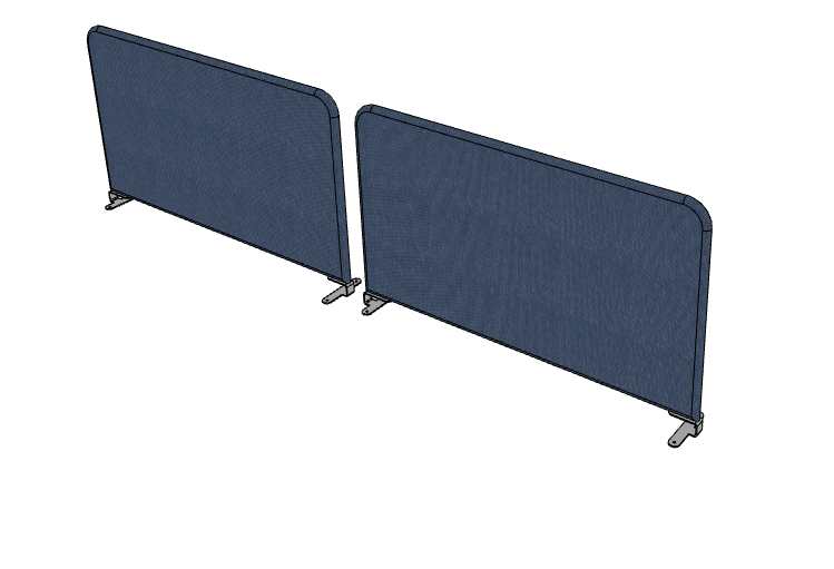 Panneau-écran frontal super acoustique pour poste seul Longueur 160cm. Hauteur 59.5 / 53cm Pinces Blanches Tissu Berta Bleu