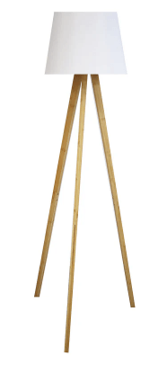 Lampadaire Cocoon avec abat-jour blanc et pieds bois