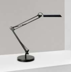 une lampe de bureau ergonomique avec une grande fluidité et amplitude des mouvements grâce à son double bras équipé de ressorts de compensation. La tête reste parallèle au plan de travail quel que soient les mouvements du bras.