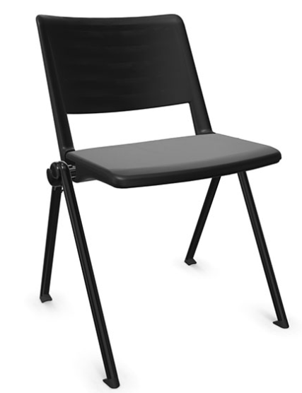 LEO Chaise 4 pieds. assise et dossier en polypropylène coloris noir. piétement époxy coloris aluminium