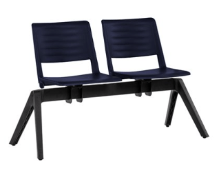 LEO Poutre 2 places assise et dossier en polypropylène coloris gris. potence noire et piétement chrome