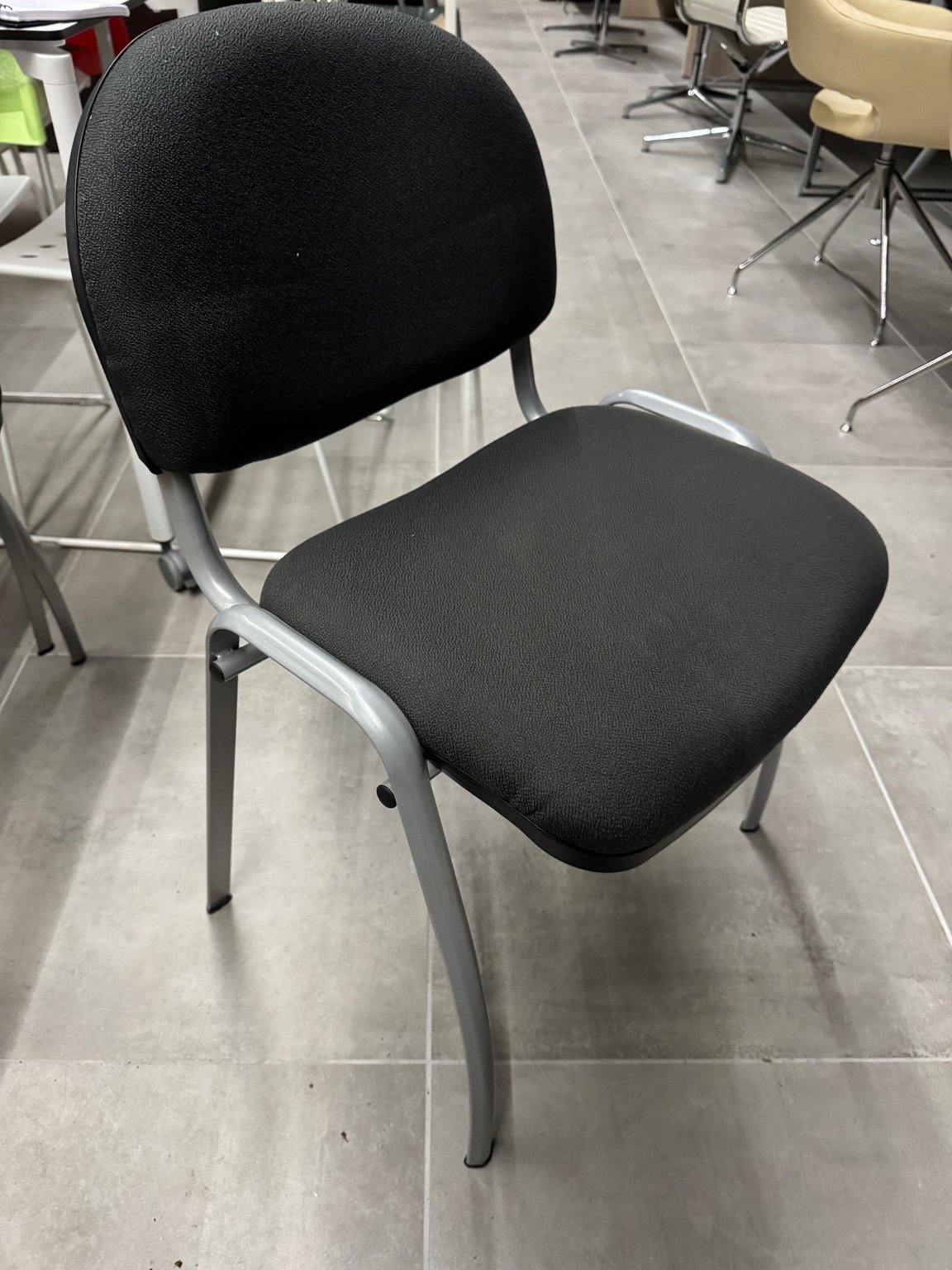 - Lot de 3 sièges visiteurs assise et dossier tissu noir, structure 4 pieds couleur aluminium