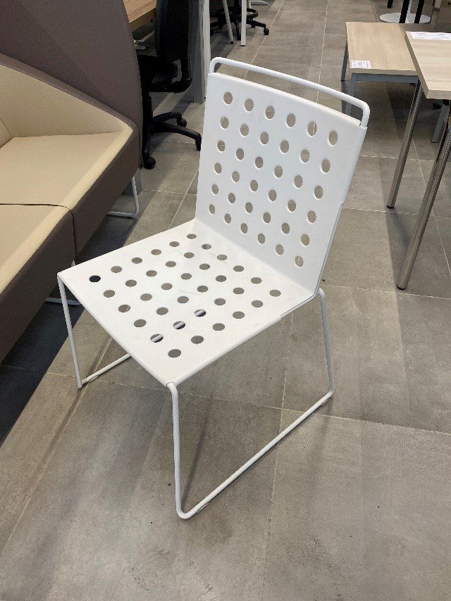 Lot de deux sièges piétement luge blanc assise et dossier en métal blanc.