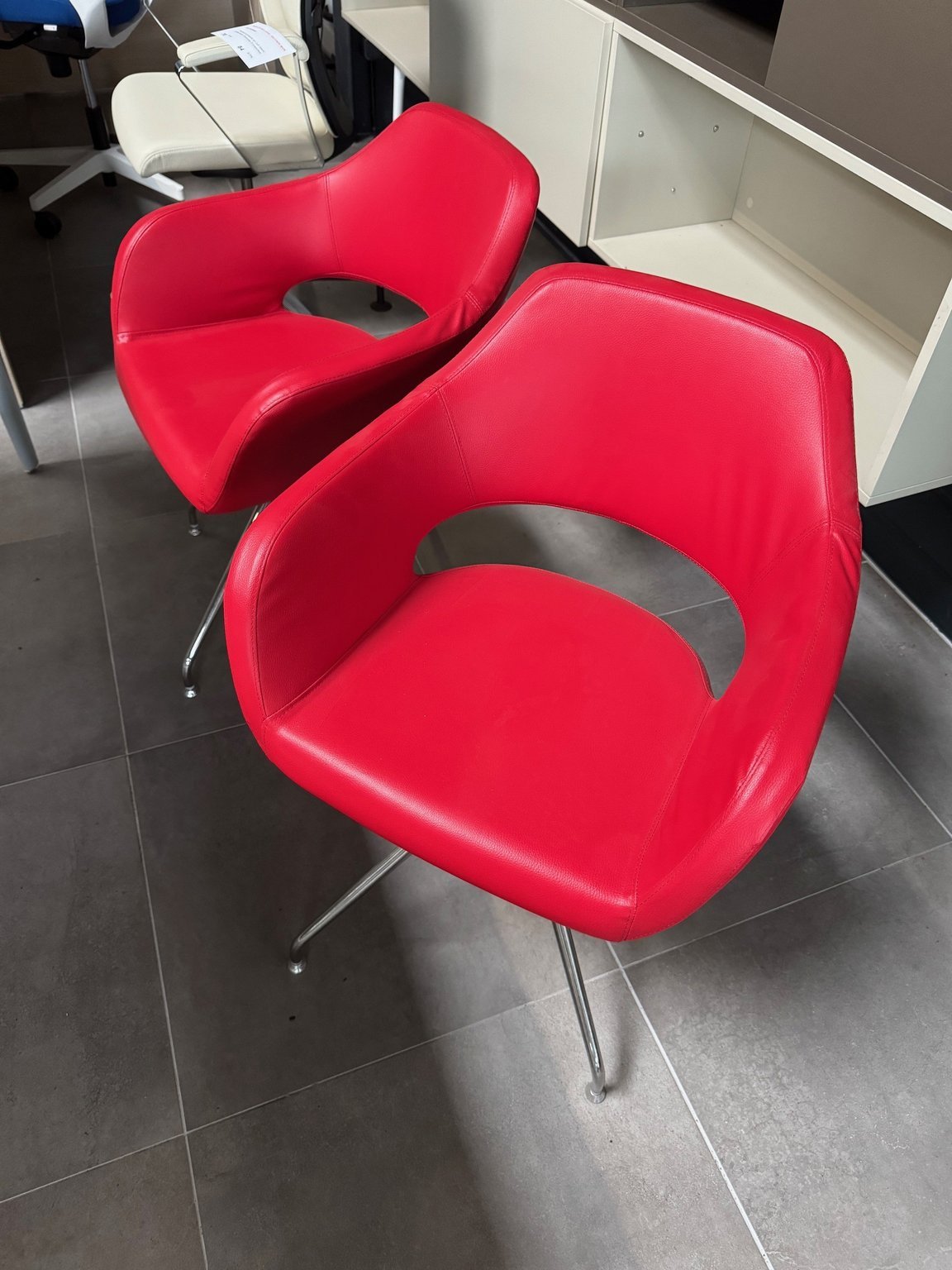 - Lot de deux sièges visiteur en cuir rouge piétement chromée