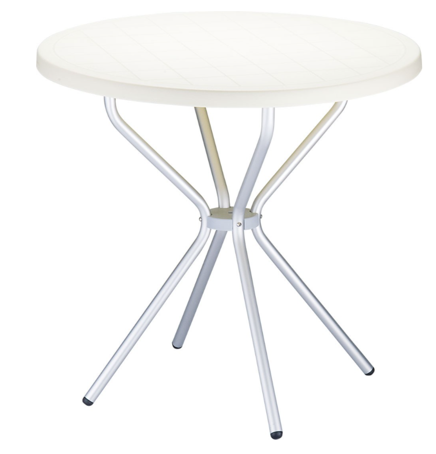 - MAJORQUE-Table plateau diamètre 80 cm en polypropylène recyclable , pieds 25 mm en aluminium anodisé -Finition plateau beige