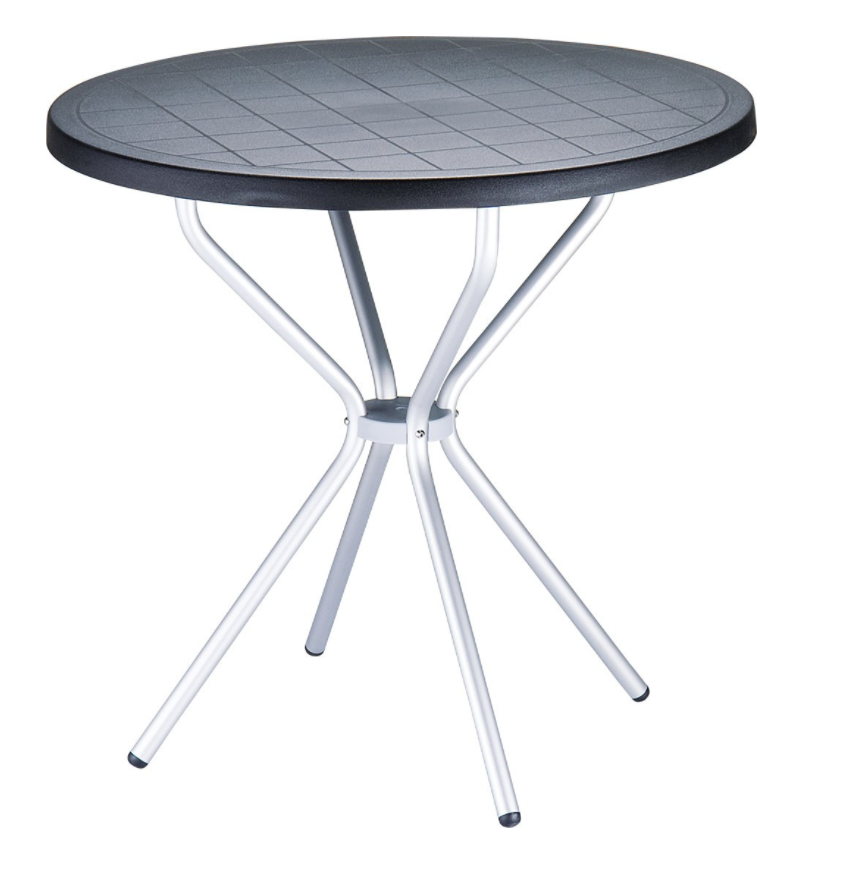 - MAJORQUE-Table plateau diamètre 80 cm en polypropylène recyclable , pieds 25 mm en aluminium anodisé -Finition plateau noir
