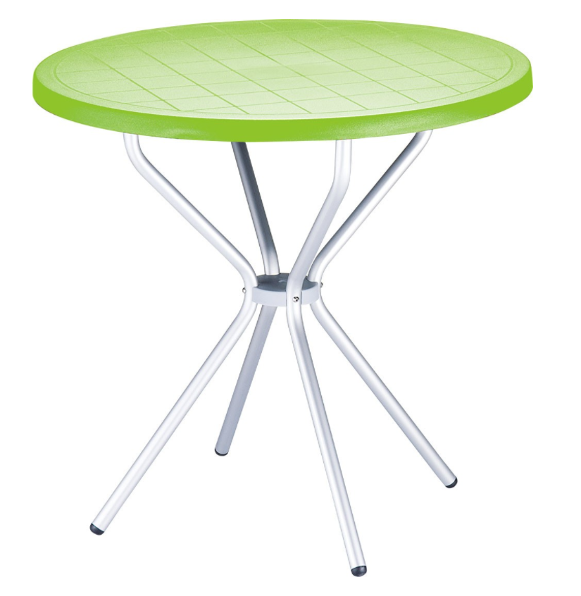 MAJORQUE-Table plateau diamètre 80 cm en polypropylène recyclable , pieds 25 mm en aluminium anodisé -Finition plateau vert