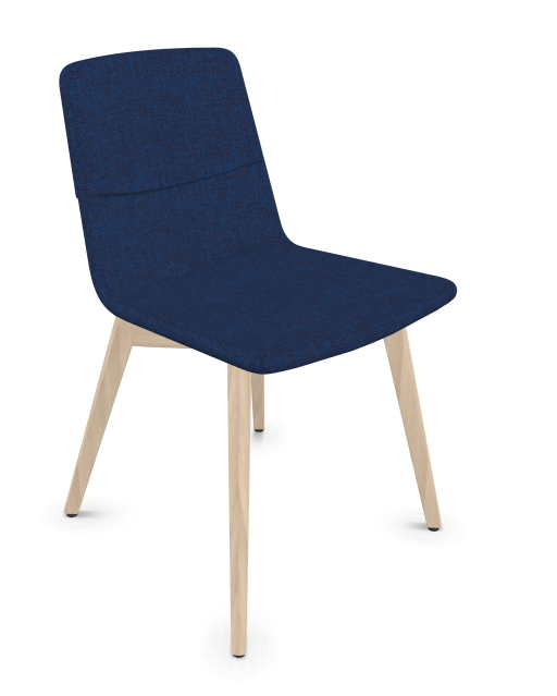 - MELODY chaise 4 pieds bois. face intérieure tissu STEP mélange bleu chiné face extérieure tissu step mélange coloris bleu piétement frêne brun
