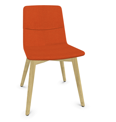MELODY chaise 4 pieds bois. face intérieure tissu STEP orange face extérieure tissu step mélange coloris orange piétement frêne brun