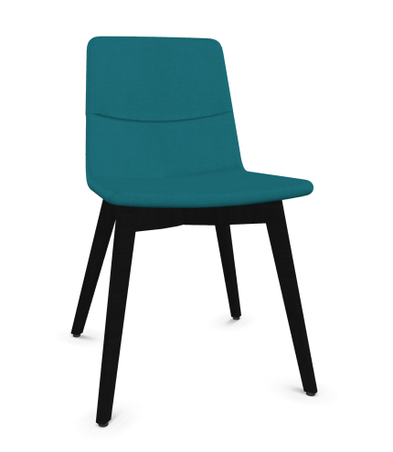 MELODY chaise 4 pieds bois. face intérieure tissu STEP turquoise face extérieure tissu step mélange coloris turquoise piétement noir