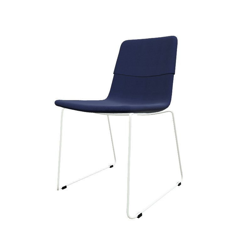 Melody - Chaise pietement Luge Blanc (BL). Tissu Int Step Bleu (L04) - Tissu Ext Step Bleu (L04)