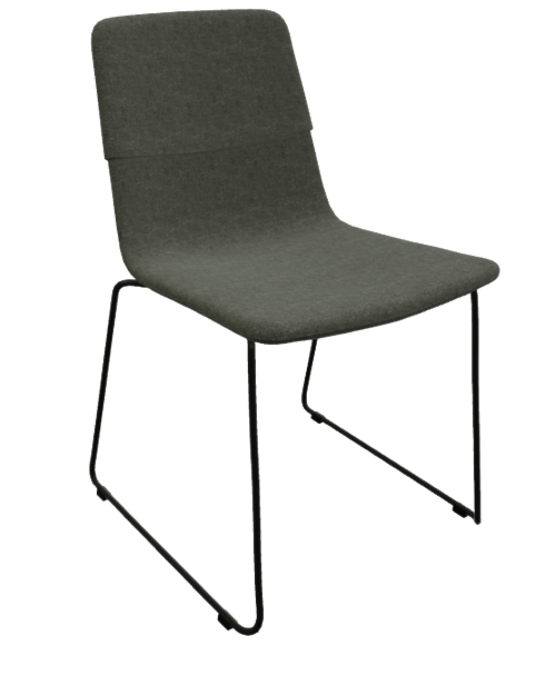 DIVA fauteuil dos tissu. piétement luge laqué noir assise et dossier tissu BERTA coloris gris clair
