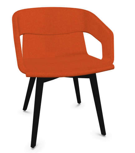 MELODY fauteuil 4 pieds bois. face intérieure tissu STEP coloris orange face extérieure tissu STEP coloris orange piétement noir