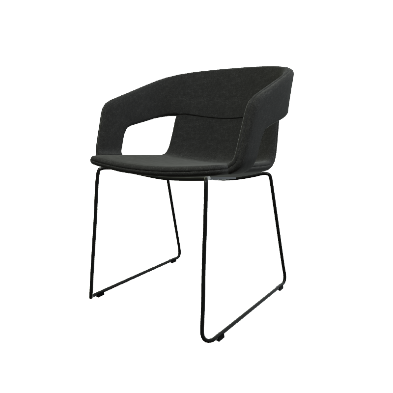DIVA fauteuil dos tissu. piétement luge laqué noir