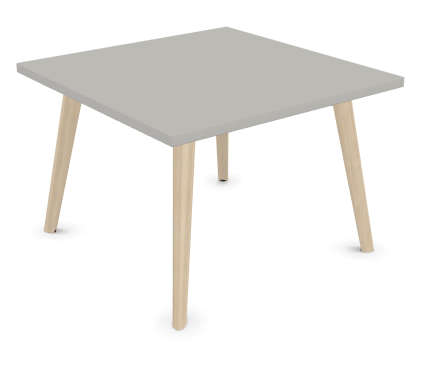 MELODY table basse carrée 70x70cm, hauteur 48cm, Plateau gris clair, piètement bois