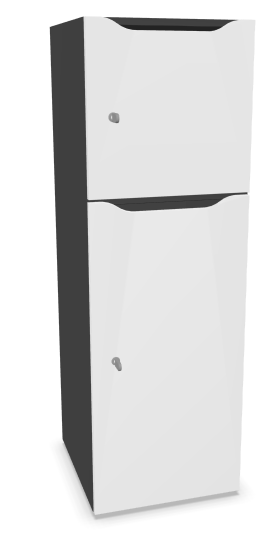 Meuble à cases H.137xL.45xP.50cm - 2 cases : 1 x H86cm (en bas) + 1 x H43cm. portes avec découpe en partie haute. serrure à clé