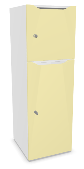Meuble à cases H.137xL.45xP.50cm - 2 cases : 1 x H86cm (en bas) + 1 x H43cm. portes avec découpe en partie haute. serrure à clé