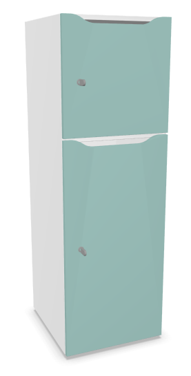 Meuble à cases H.137xL.45xP.50cm - 2 cases : 1 x H86cm (en bas) + 1 x H43cm. portes avec découpe en partie haute. serrure à clé
