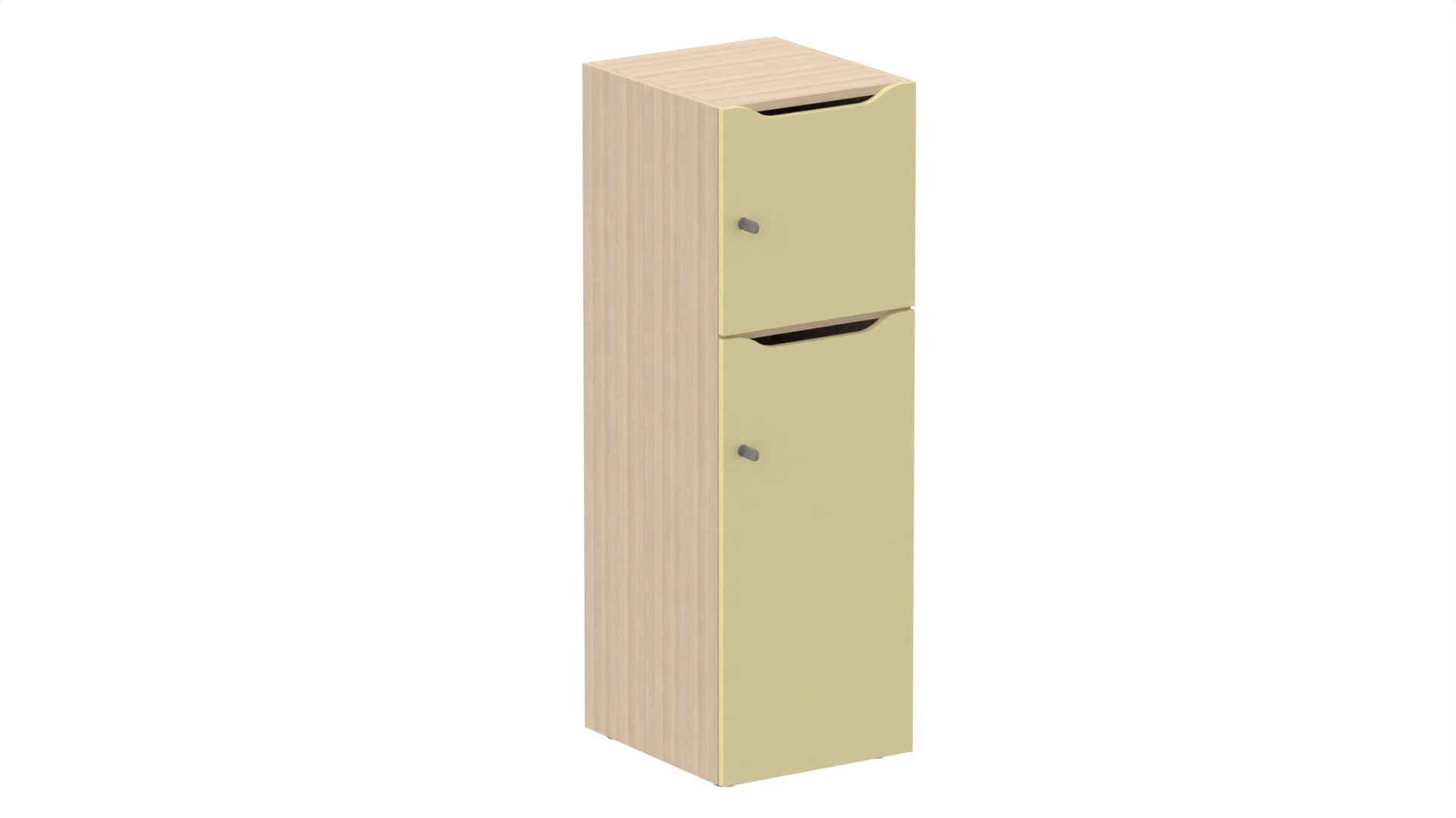 Meuble à cases H.137xL.45xP.50cm - 2 cases : 1 x H86cm (en bas) + 1 x H43cm. portes avec découpe en partie haute. serrure à clé
