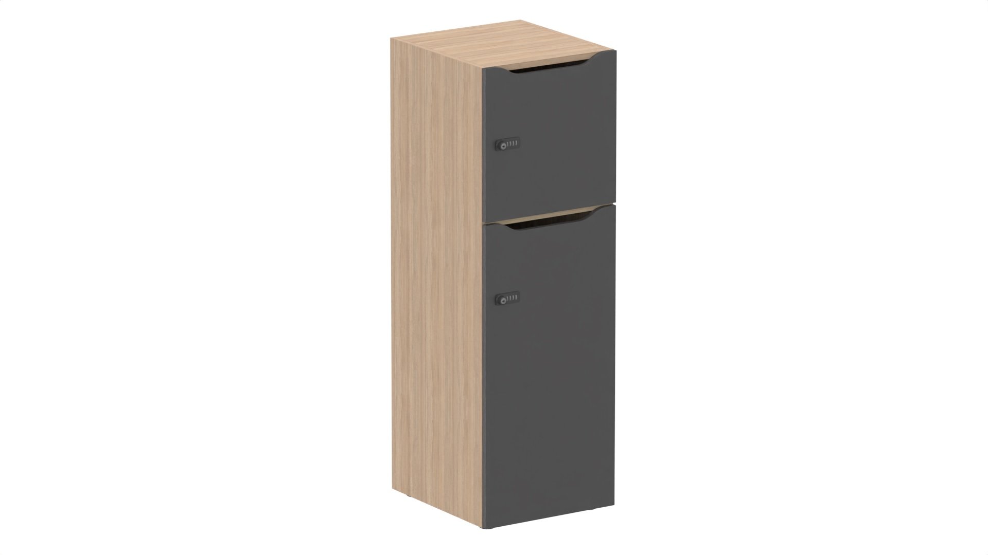 Meuble à cases H.137xL.45xP.50cm - 2 cases : 1 x H86cm (en bas) + 1 x H43cm. portes avec découpe en partie haute. serrure à code