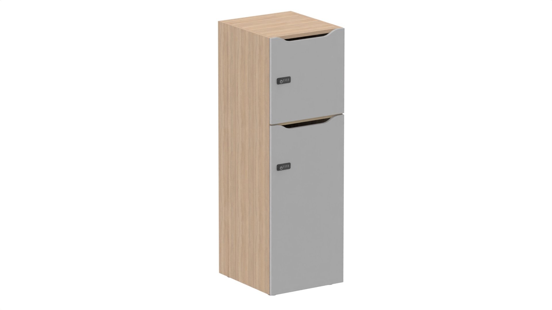Meuble à cases H.137xL.45xP.50cm - 2 cases : 1 x H86cm (en bas) + 1 x H43cm. portes avec découpe en partie haute. serrure à code