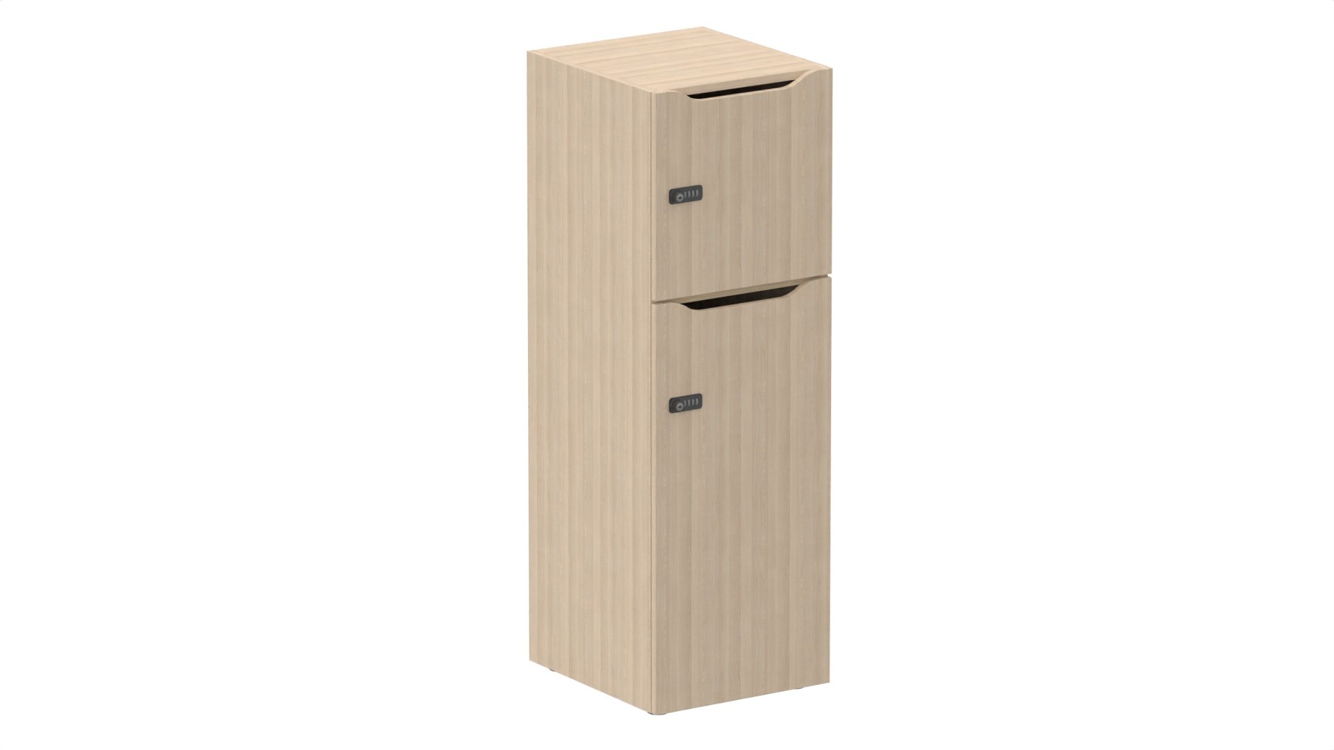 Meuble à cases H.137xL.45xP.50cm - 2 cases : 1 x H86cm (en bas) + 1 x H43cm- portes avec découpe en partie haute. serrure à code