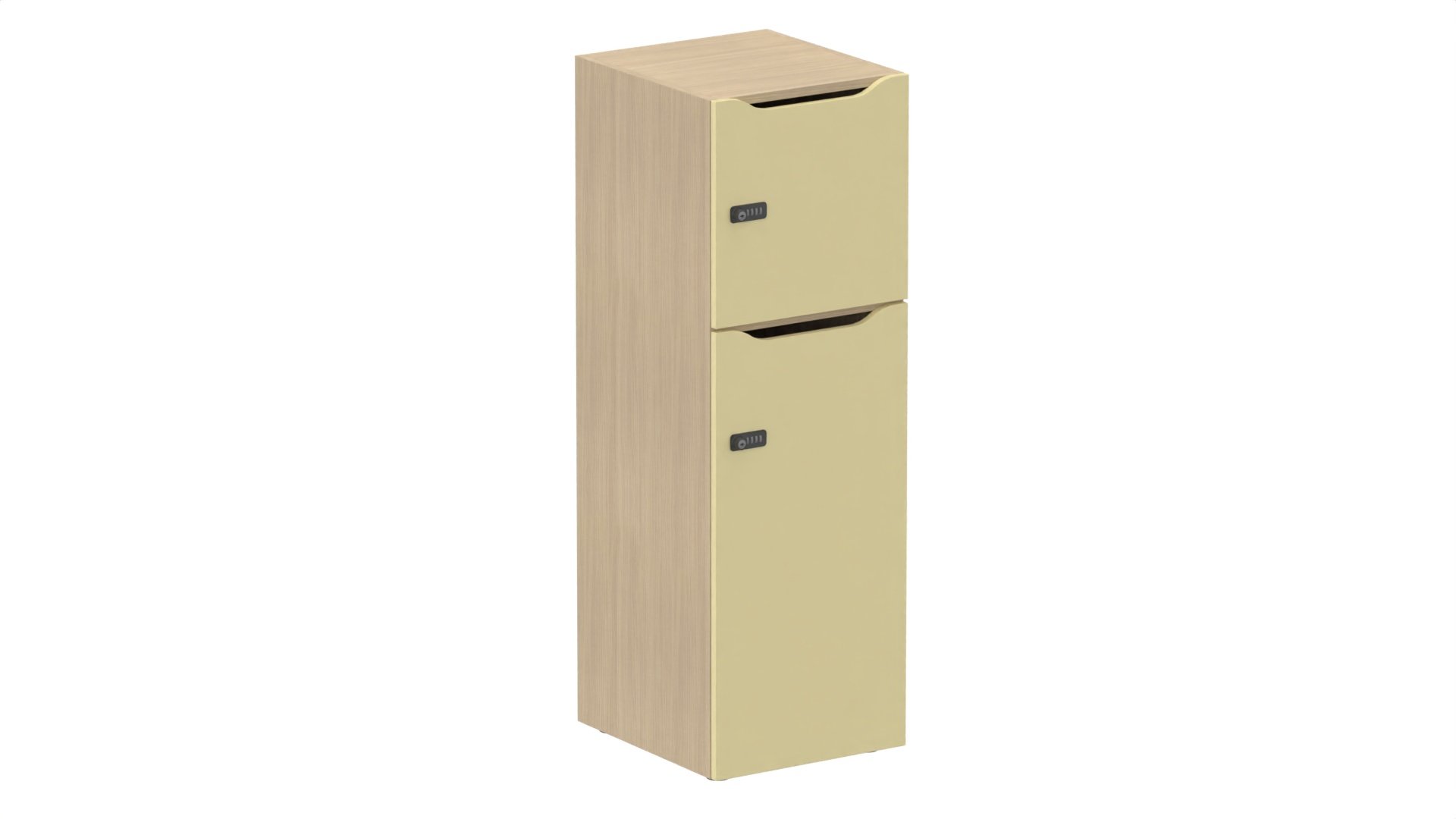 Meuble à cases H.137xL.45xP.50cm - 2 cases : 1 x H86cm (en bas) + 1 x H43cm. portes avec découpe en partie haute. serrure à code