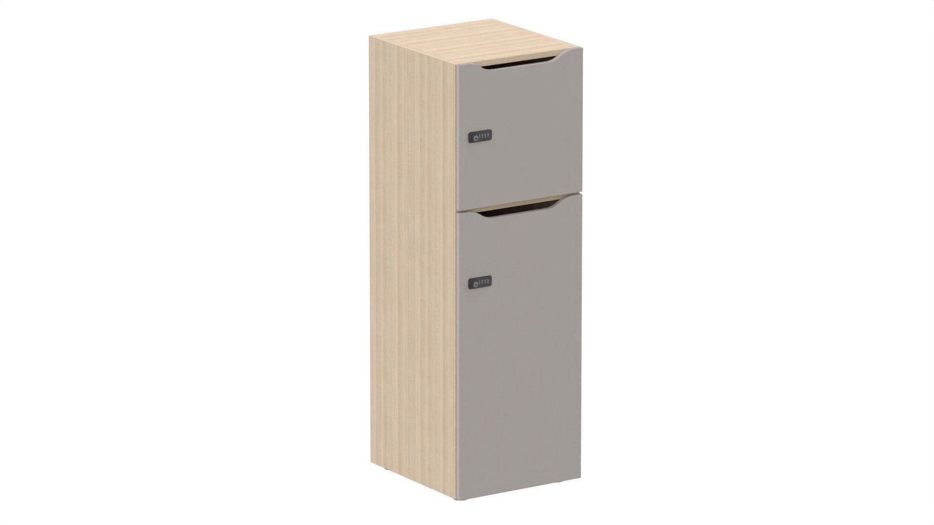 Meuble à cases H.92xL.45xP.50cm - 2 cases H43cm. portes avec découpe en partie haute. serrure à code