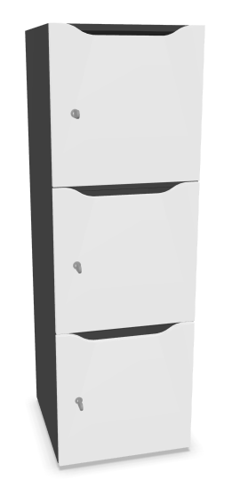 Meuble à cases H.137xL.45xP.50cm - 3 cases H43cm. portes avec découpe en partie haute. serrure à code