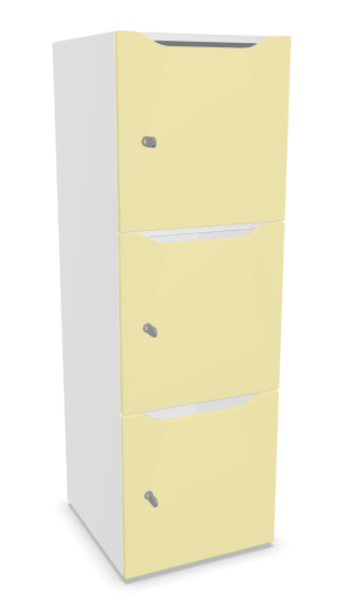 Meuble à cases H.137xL.45xP.50cm - 3 cases H43cm. portes avec découpe en partie haute. serrure à clé